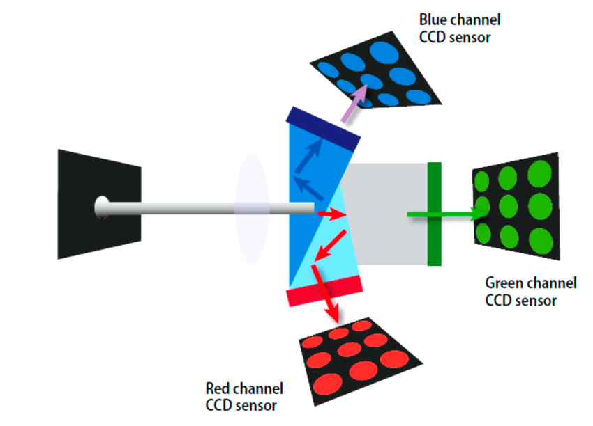 | 3-CCD sensor schematic | Sensor w/ Bayer filter |